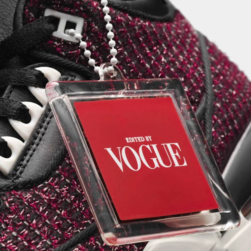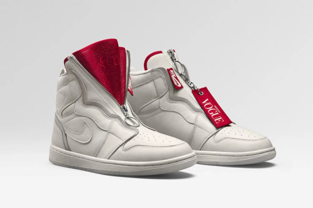 其中一款名为AJI Zip AWOK的新鞋共有红白两色。在设计上,鞋身配有“Edited by Vogue”的小标牌,而鞋舌和鞋底则印有“AWOK”(Anna Wintour Okay——这句英文是作为Vogue主编的Anna Wintour审核通过稿件时专用的缩写。而另一款AJIII SE AWOK则以 Anna Wintour经典的墨镜配香奈儿套装造型为灵感,用粗花呢作为主要面料,并选择了红黑配色。
