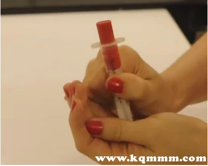 一个小时之后把注射器取出来,然后把高铁从注射器里慢慢的挤出来,挤出来的口红膏体,再放到之前准备好的空口红管里,这样一款可以食用的口红就做好了。