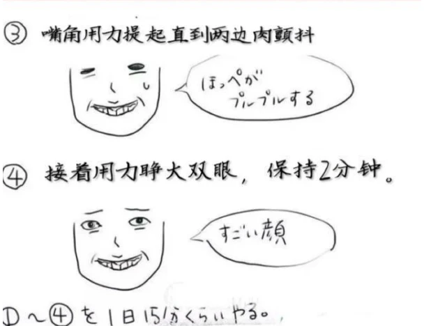 你能想象到对着镜子,狰狞表情的样子吗?那一瞬间真是吓到自己了,当然,怀着对此套笑容瑜伽的蜜汁信任,我坚持以每天八次的频率连续做了三天。