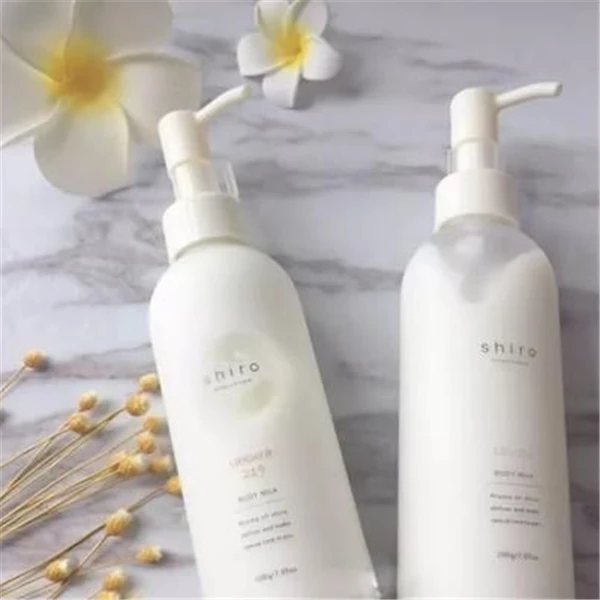 成分:shiro身体乳采用的成分全部来自于大自然,在乳木果油和天然果蔬精华提取物的基础上,添加了植物油和牛奶成分,有效帮助肌肤保湿补水,缓解肌肤干燥粗糙情况。同时牛奶成分还可以帮助肌肤美白,改善肤色暗沉。而且shiro身体乳的成分无任何人工添加剂,非常温和,使用之后不会对肌肤造成伤害,所以敏感肌的宝宝们也可以使用shiro身体乳哟~