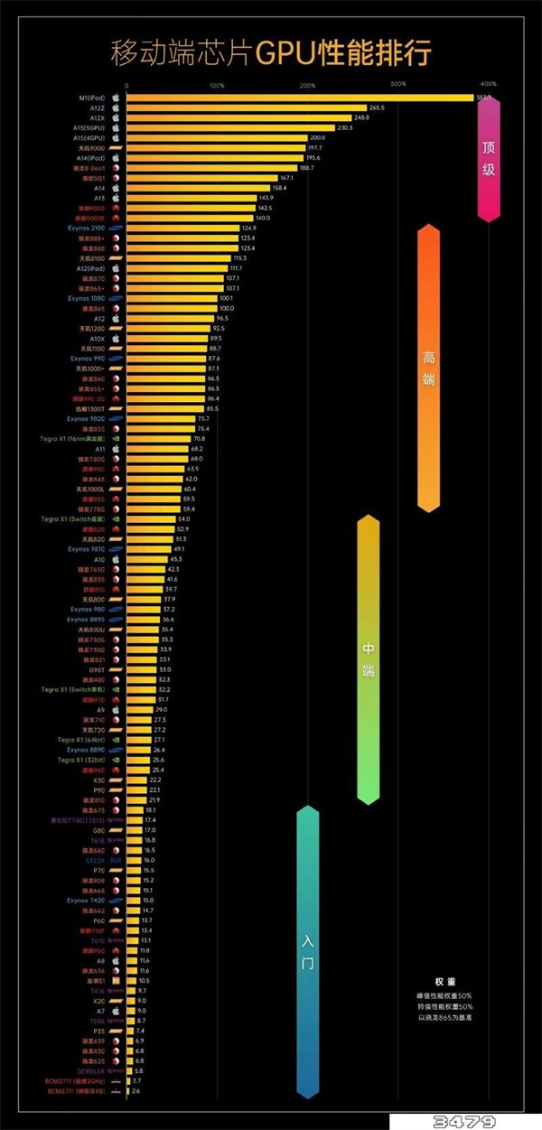 移动端芯片GPU性能排行榜:
