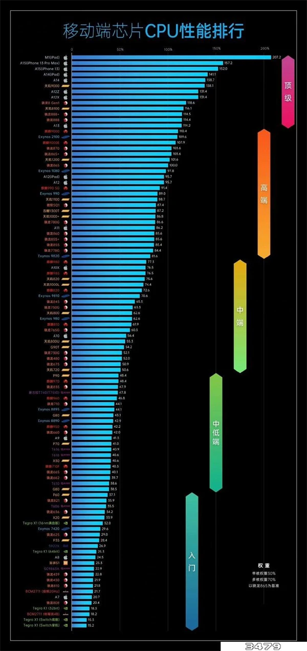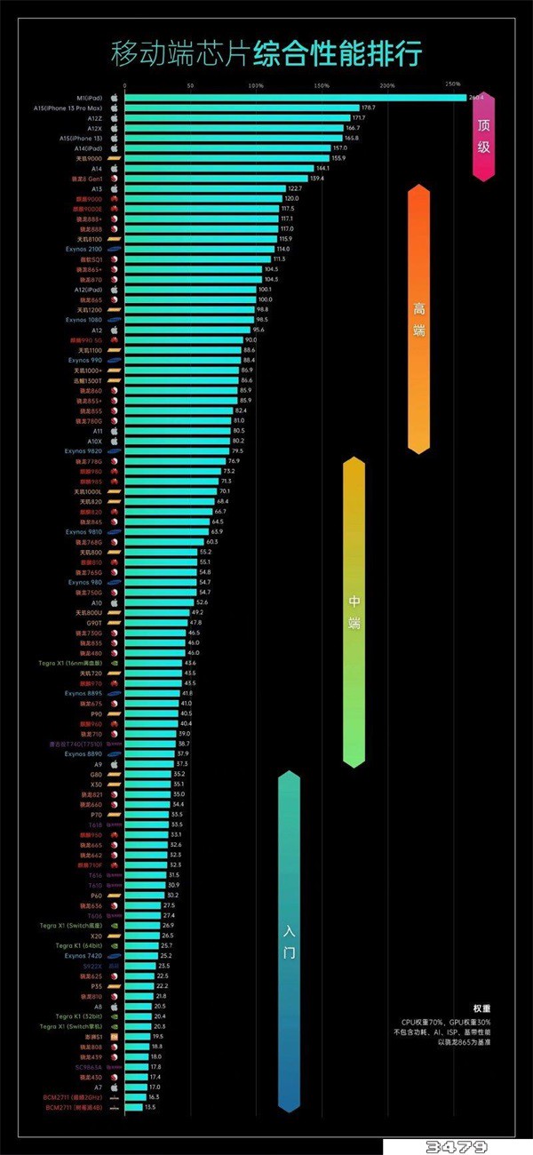移动端芯片CPU性能排行榜: