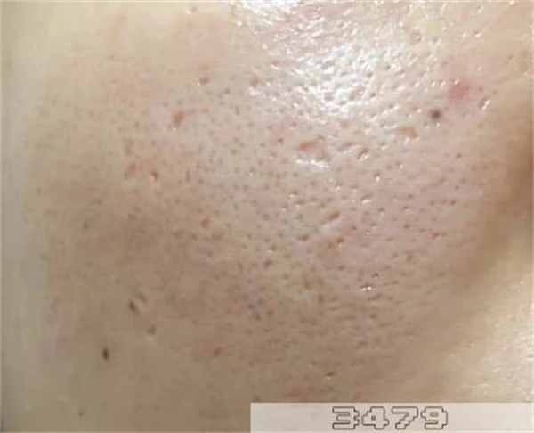 常见表现:常见于面部,皮肤干燥,毛孔看上去是椭圆形的,容易起皮