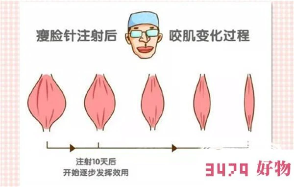 01注射瘦脸针的效果是慢慢出现的,注射瘦脸针后约两周到一个月左右开始出现效果。需要注意的是,注射瘦脸针效果并不是永久的。通常瘦脸针效果能保持三到六个月左右的时间,然后治疗效果会慢慢消失,这时如果要保持原先的疗效,便必须接受再一次的注射。
