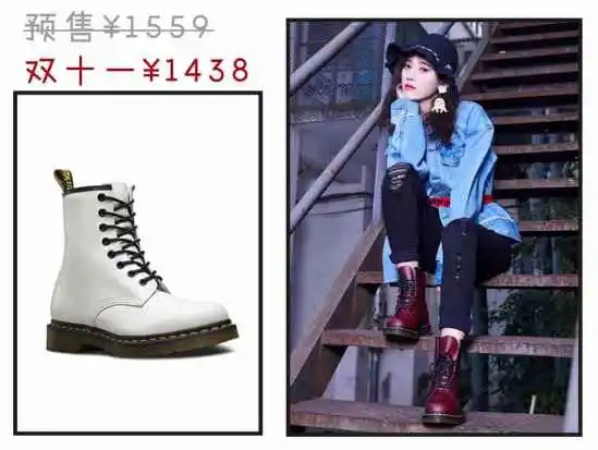 这款马丁靴也非常好穿,牛仔外套、卫衣、羽绒服都hold得住,小黑裤、牛仔裤、半裙也没问题,这里只选了白色、酒红色两种,还有更百搭的黑色可以选哦。