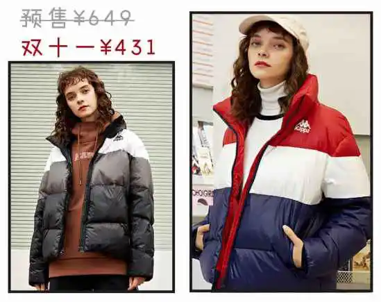 不知道为啥,看到Kappa总有种童年记忆的感jio,不过现在是酷仔蔡维泽代言的,他们乐队穿着Kappa唱歌的时候超级酷炫!这件条纹拼接羽绒服里面加高领衫、卫衣都很好看。