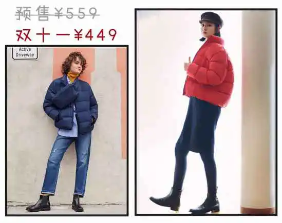 双十一马上就到了,衣服是大家必定抢购的东西了,今天就推荐大家一套时髦好看的行头,就是羽绒服加卫衣的组合,趁着这个日子赶快去抢购吧。