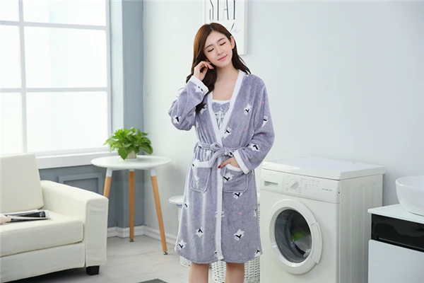 睡袍指在卧室中穿用的宽松且较长的袍服。面料多选用柔和淡雅色彩及文静秀气的小碎花图案,选用面料常为纯棉织物或高档丝绸。如果袍子过厚的话要注意下被子的温度,不然过热会感冒。