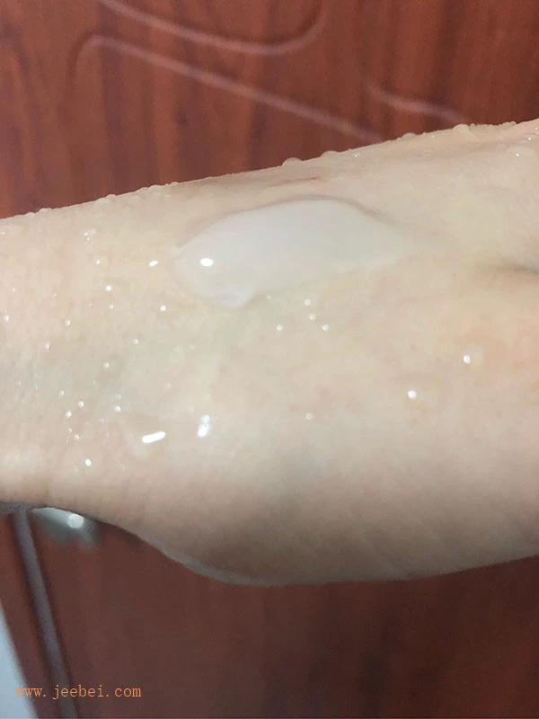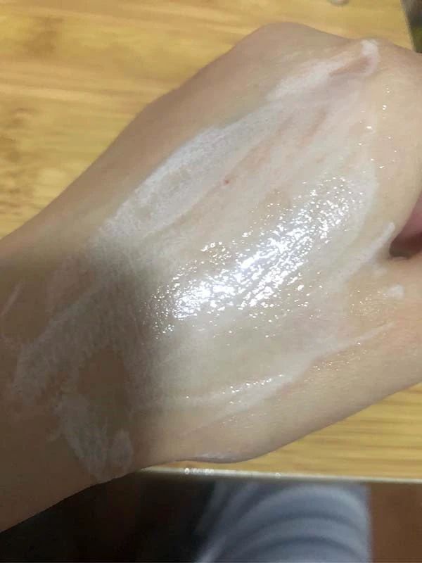 啫喱挤出来是透明的半凝胶状,稍微有些流动性,味道呢闻起来也是很清新的,有点像芦荟胶,涂着感觉水水润润的,没有黏腻感这点值得称赞。