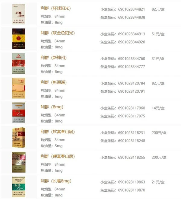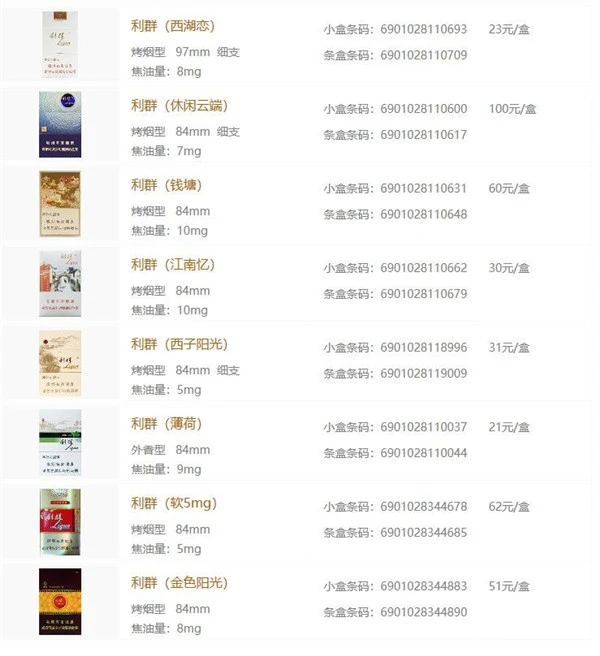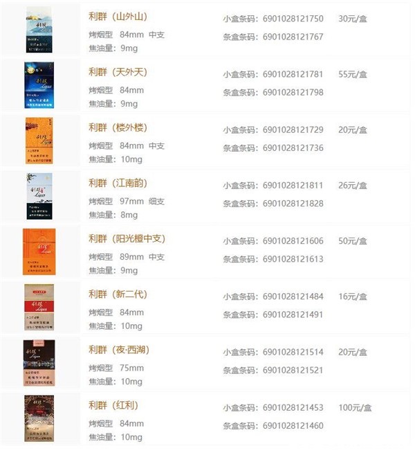 利群目前所有的香烟款式,及信息几个情况如下图。
