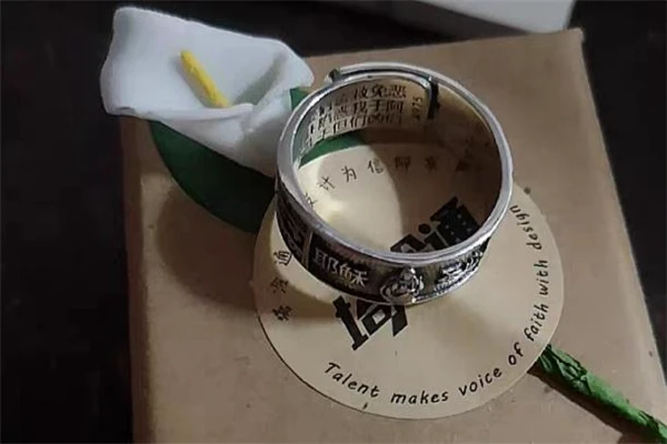 以前买过类似的做旧戒指,拿到手里总有一种粗制滥造的感觉,但是这次塔冷通家的这款戒指手感很细腻,戴上也不会掉色,可以调节大小,对比价格,性价比很高了!里面的文字非常清晰,对于心中有信仰的人来说,有时候看看静心,戴在身上安心。