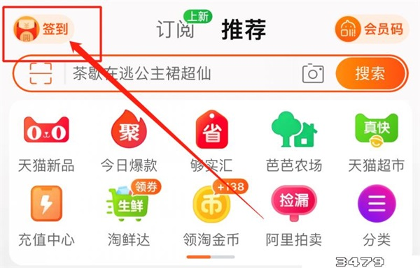 2、在【首页】左上角,找到【签到】,点击进入即可成功签到。