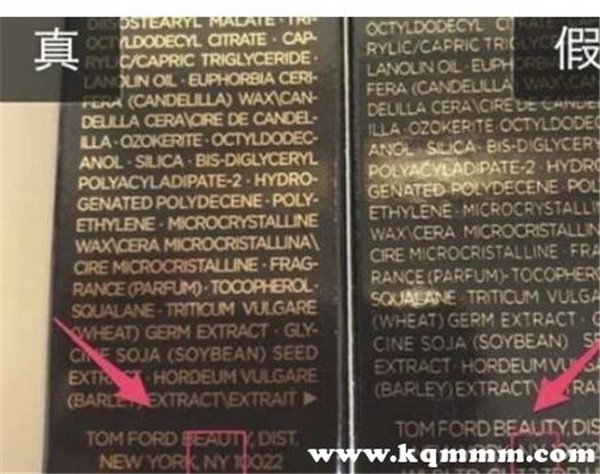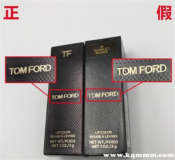 1、字体,TF正品口红上的字母清新,字母与字母排列工整整齐,外包装盒子表面的菱形格纹清晰精致。并且外包装有菱形纹的地方里面也会有。而仿品有的字母印刷粗糙,也不清晰,仿品上的字母粗细还不一致,仔细观察就能发现上面粗一点下面细一点。