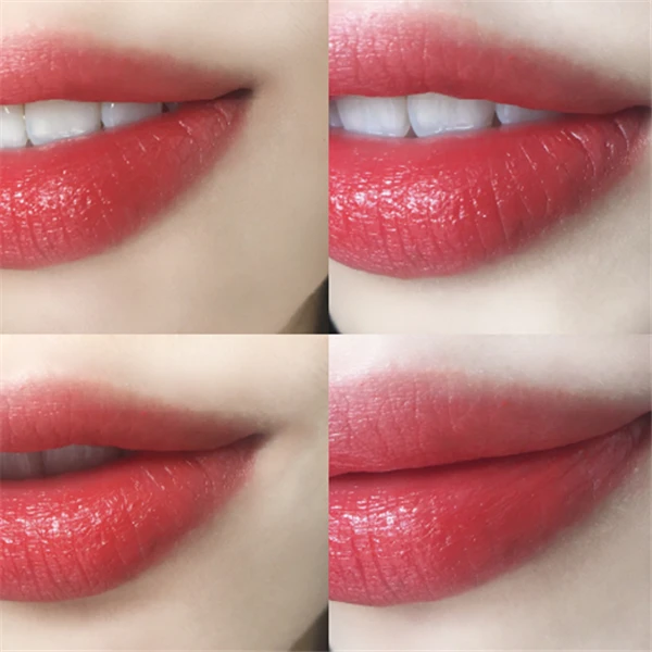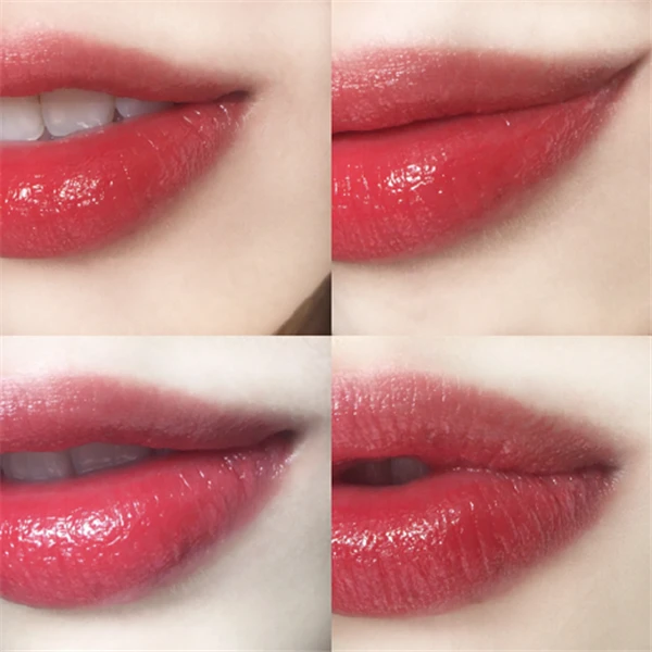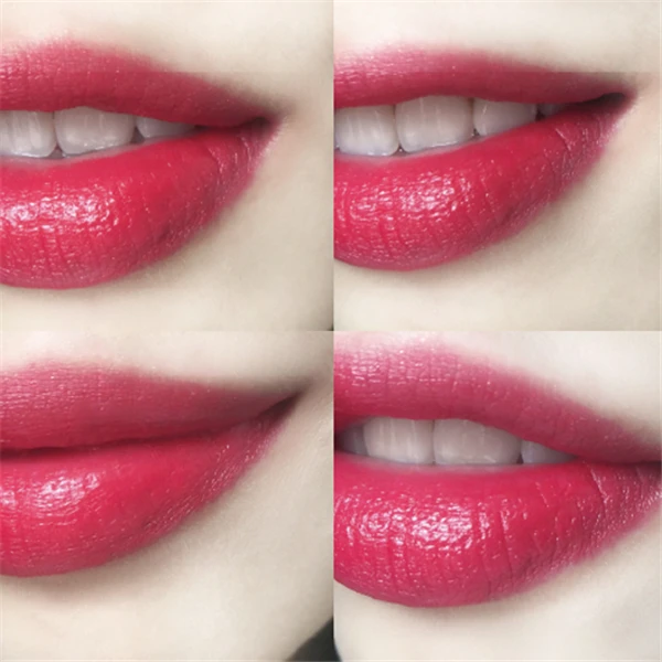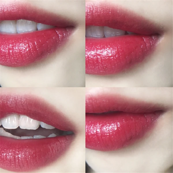 72比40就年轻很多,是个元气的红色,和细管10有点像,但着色更加饱和扎实。膏体也有细金闪,但是上嘴不太明显,红色不挑皮,四级也都适合,算是个不会出错的颜色吧。