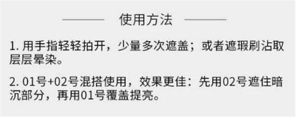 使用粉底霜或者bb霜后,沾取适量点在要遮盖的瑕疵部位,轻拍按压开即可。
