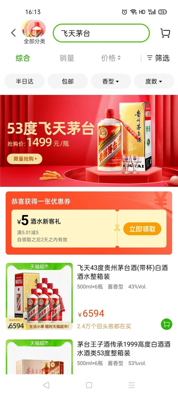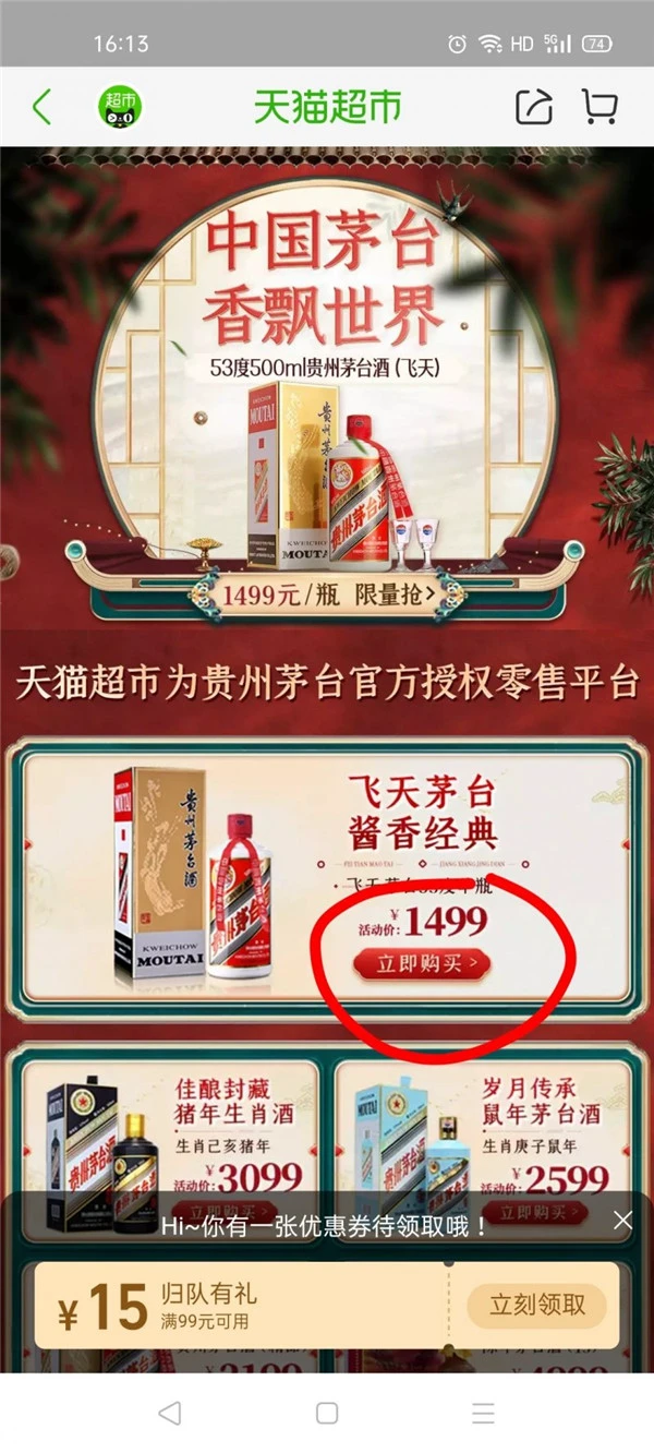 茅台作为国内第一名酒,尽管价格非常贵,但市场依然火爆,每次茅台一上市很快就会被抢完,茅台在超市、各大网店也都有销量,很在线下抢不到茅台的人,就会想着在线上抢购,比如天猫你,只是天猫1499飞天茅台怎么抢,天猫1499飞天茅台购买流程是这样的?