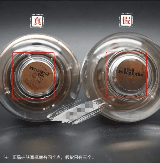 正品护肤膏是瓶底有四个点,假货只有三个。