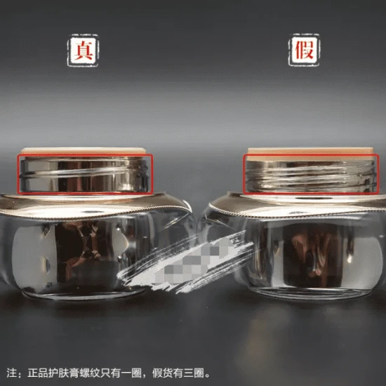 正品护肤膏螺纹是有一圈的,假货有三圈。