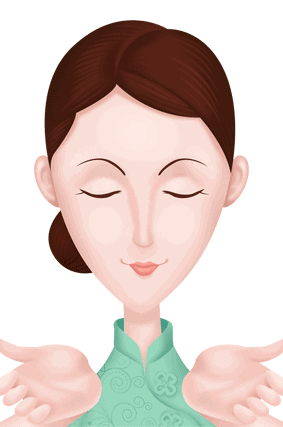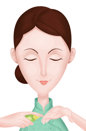4、额头部分,用中指以及无名指指腹,由眉心往左右两侧,以螺旋状轻轻按摩整个额头肌肤。