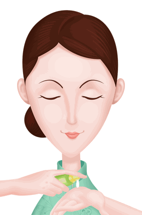 3、用指腹,轻轻的点拍眼周。