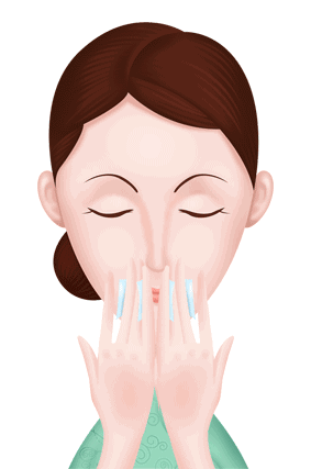 2、在湿润的面部,分别轻点于两颊,额头,鼻子,下巴处。