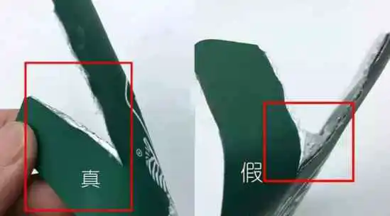 正品的面膜切口撕开是很平滑的,轻松,不费劲。而假货的撕开则显得拖泥带水,造价商再一次在考验妹子的手力,可以看出假货撕开一段后,内膜都没完全断开。