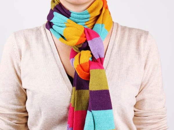 第一步 把围巾绕在脖子上打一个结,打结处要留一点空隙