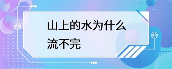总之,山上的水源似乎永远不会干涸,这是因为水循环的存在,以及山上的土壤和岩石的特性。但是,我们也需要注意保护水源,让它们继续流动,为我们的生活和生态环境做出贡献。