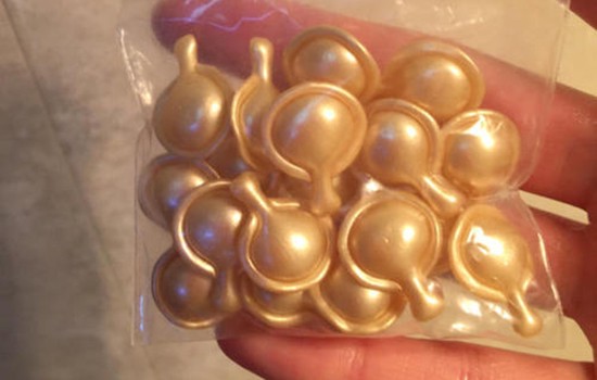 4、味道和使用感:假胶囊有很大VE的味道。真胶囊只有淡淡的味道,几乎闻不到。并且真货更好吸收,吸收完一点都不油腻。
