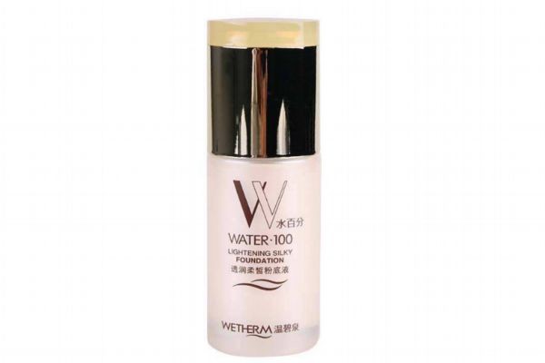 温碧泉粉底液质地非常水润,粉质轻薄,持妆长久,清爽服帖,妆容轻透,不泛油光。有效去除肌肤暗哑,保持柔美白皙的肌肤,提升粉质的细腻度和光泽度,滋润保湿,让底妆光感提亮,轻薄服帖,油皮不脱妆,干皮不卡粉。
