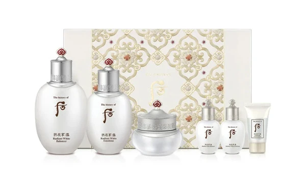 具有美白功效的爽肤水与乳液礼盒套装。由韩方美白成分制成,美白同时保湿,帮助打造白皙透亮的健康肌肤。以特别研制的韩方七香八白散,配合甘菊萃取物及雪甘散,净化黑色素及瑕疵。令肌肤清澈透白,散发柔亮光彩。