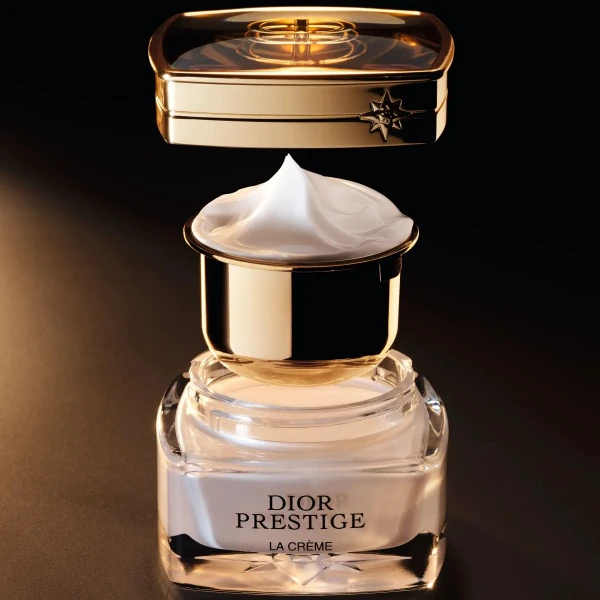 为了符合高订元素,这次的乳霜瓶身上面镶嵌了迪奥「罗盘玫瑰」符码,玻璃瓶底也有相同图腾。厚实的玻璃则是减轻20%的环保玻璃材质,并提供填装瓶,希望能完成永续目标。