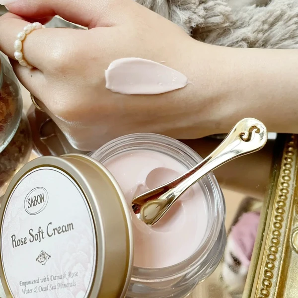 SABON选择女生最爱的玫瑰作为脸部保养系列的首发,这次使用的大马士革玫瑰荣获COSMOS有机双认证,搭配另一明星成分死海矿物质进行滋润保湿,滑顺好延展的奶霜质地,推荐干性肌肤,抹在肌肤上仿佛盖了一层丝绒薄被,特殊亮肤配方能为肌肤打造透光感,肤况好的话,早上单擦这瓶就可以出门。