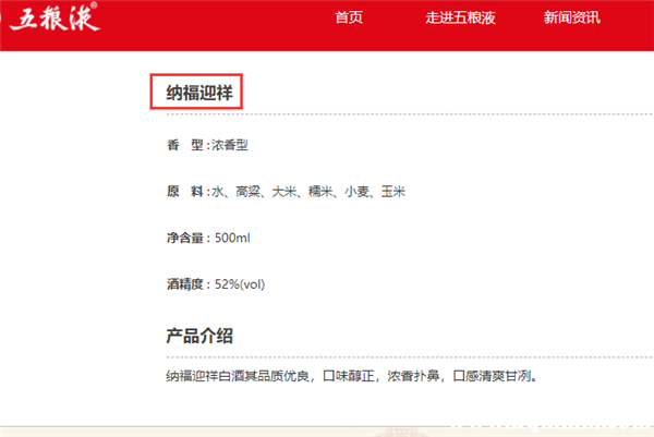 2、如果是五粮液纳福迎祥,可能不是贴牌酒。截止到小编发稿日期,在其官网上有看到这款酒(五粮液纳福迎祥),具体如下所示: