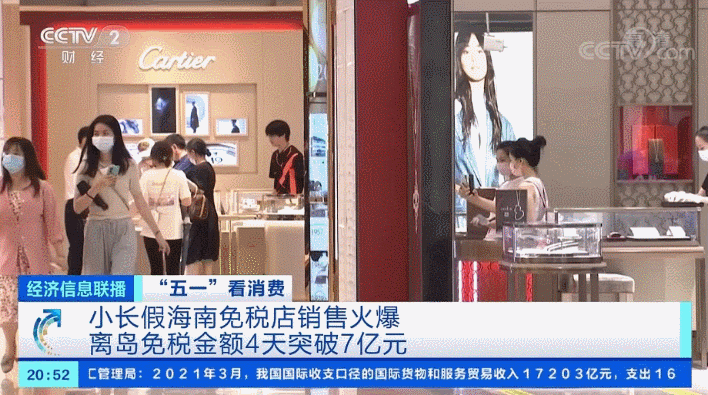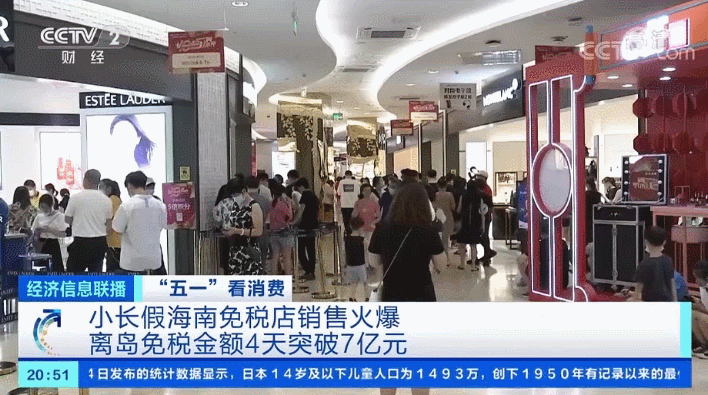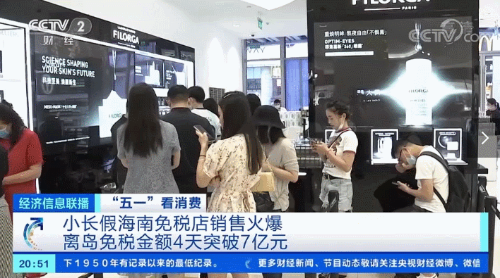 海口海关的数据显示,仅5月4日一天,离岛免税购物金额达到2.49亿元。5月1日至4日,离岛免税购物金额突破7亿元。虽然小长假结束了,但是明天首届中国国际消费品博览会即将在海口开幕,这场国家级的消费品展会也将再次吸引来自全球的消费力量,也将为海南免税带来新一波购物热潮。