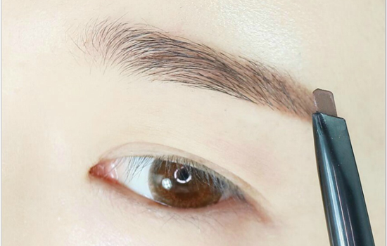第一步:画眉毛之前用眉笔自带的眉刷梳理毛流,用摩卡棕色的眉笔着重画出眉尾部分,眉形和颜色都根据本身的眉毛自然过渡。