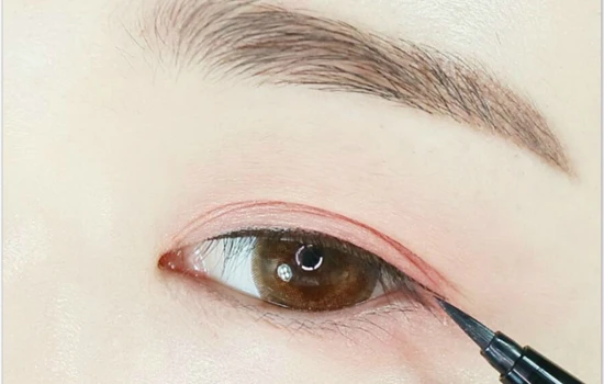 第三步:用黑色的眼线液笔画一条很细的内眼线,笔头非常细软,画起来非常流畅。