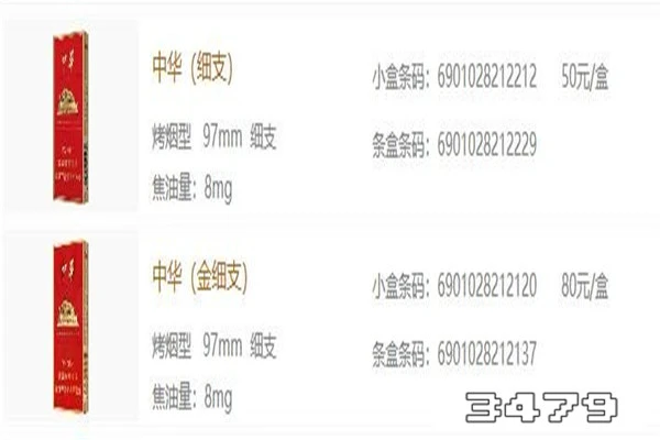 中华烟细致有两种,一种是普通细支,价格大概在50元一盒,一盒20支,一条10盒,约500元。另一种是金细支,价格在80元一盒,一盒20支,一条10盒,约800元。
