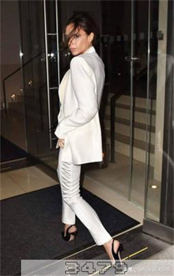 用白色西裝搭配藏蓝色的高跟鞋,西装裤最好挑选阔腿裤的款式,气场更加强大,带上精致的长款耳饰,将头发烫成直发,戴上精致的金色手表,这身搭配时尚优雅,藏蓝色的高跟鞋更是最大的亮点,非常适合职场中的女强人穿搭。