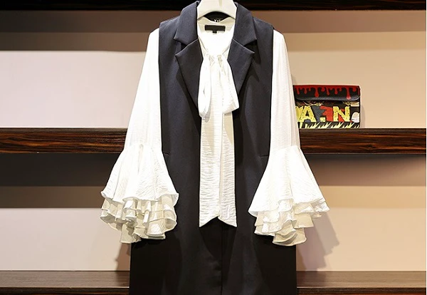 本来长马夹给人的感觉就是利落率性,再加上一条走起路来裤腿随风摇曳的同色系阔腿裤,真的是特别帅气了,内搭再穿上一件很有设计感的雪纺衬衫,性感又大气。