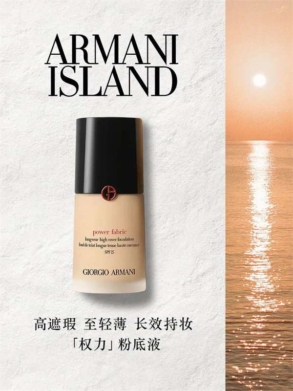 Giorgio Armani 2017年推出完美丝绒粉底(Power Fabric),轻盈服贴的粉体质地打造出绝美持久丝绒妆感,成为Giorgio Armani最热卖的粉底,2022年再升级成「超持妆粉底Power Fabric+」。粉底以水慕斯的丝绒质地完美服贴脸部轮廓,捕捉每道光线,以偏光遮瑕,隐形毛孔与斑点,随着带妆时间越长,丝绒奶油光越是精致,实现长达24小时的零时差底妆。靠的就是「超时持妆科技」能在肌肤即使出油后不暗沉,不溶妆,转变更迷人的高级奶油光。成份中并添加「超轻润精华油」使质地更滑顺服贴,丝滑的延展于每寸肌肤上,高保湿度能有效隐形纹理、减少干纹,宛如为肌肤披上高级订制云丝绒华服,舒适透气零浮粉。