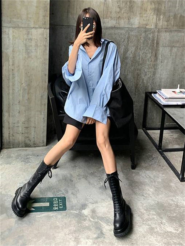 马丁靴搭配衬衫裙,短裙,短裤都是很好看的,夏天穿马丁靴,也可以作为带来清凉感的时尚单品,还能展现出大长腿,马丁靴在一定程度也能起到拉长腿部比例的作用。