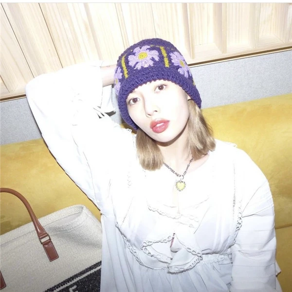 纵然已经有抢眼的配色,还是觉得少了一味的话,可以挑选有绣上图纹的毛帽。泫雅在这边就很好地利用,不显得太过分的造型花朵毛帽让整体的穿搭风格呈现出不一样气场,冬天简单白色的上衣与一条牛仔裤,就需要一顶时髦保暖的毛料帽。