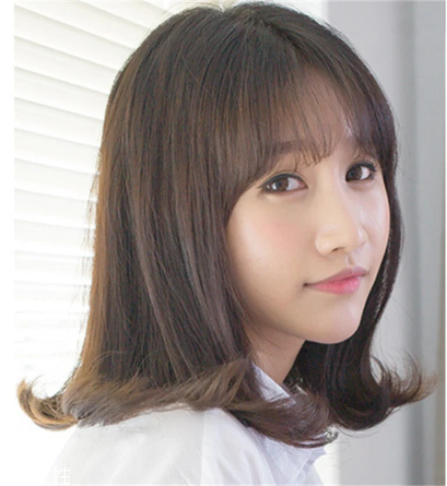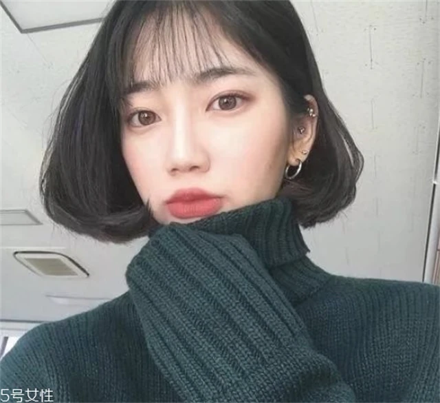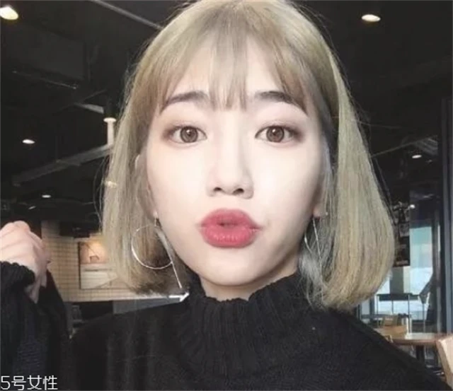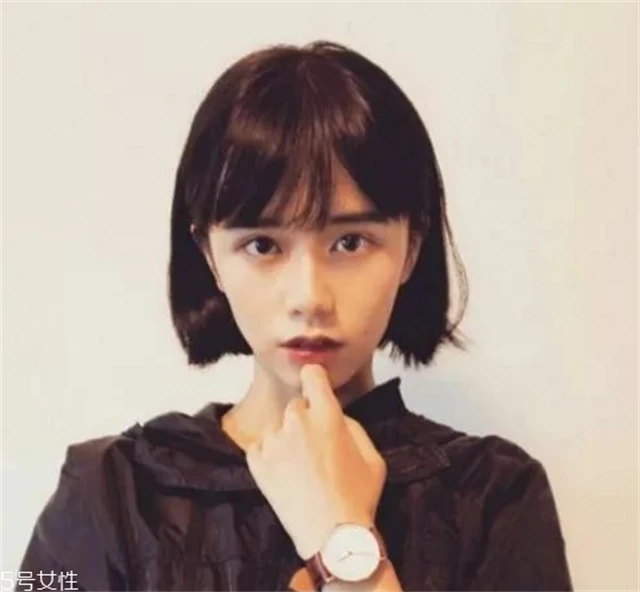 上图是齐刘海及嘴短发,发尾稍稍内扣,减龄萌萌哒,很适合学生党的一款发型。黑色的发色就很合适,浅色发色反倒是不适合这样的发型。