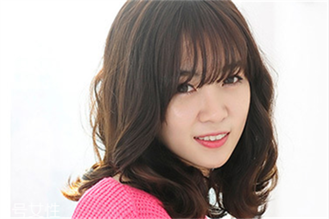 上图是薄刘海+发尾一个大卷。发尾弄一个大弧度的C型卷或者是S型卷,都是能够立马提升颜值,瘦脸的。弧度包裹住两颊,可以隐藏脸上的肉肉和突出的颧骨、下颚骨。脸型比较大、脸上肉肉比较多的女生,可以尝试一下呢。
