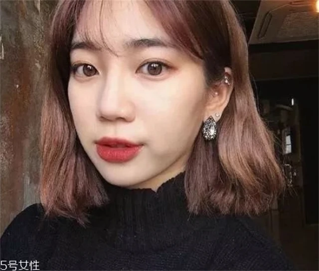上图中的发色是偏黑的深棕色发色,非常的显白,白皮适合黄皮也适合。中分的发型,瘦脸效果很好。及脖的短发,非常的显高,发尾稍稍带有一丝卷度,有修饰脸型的作用,整体来说,这款发型非常百搭,不挑人。