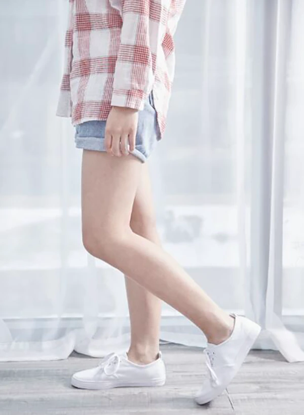 穿平底鞋想要穿出好的身材比例,搭配短裙或短裤就一定是明智之选了,因为裙子或裤子越短,露出的腿部越多,视觉上看起来就会越高一些。选择一双高帮帆布鞋,配上一条百褶短裤或牛仔短裤,绝对满满的学院风,尽显穿着者的自信阳光与青春靓丽,非常适合女生在校园里穿着,走到哪都带着一股青春与活力。
