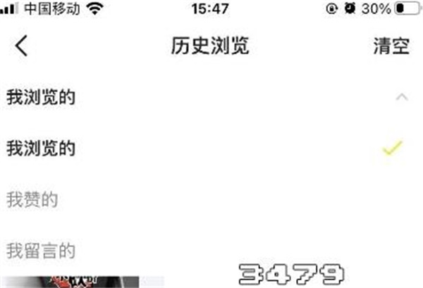 3、点击“历史浏览”就可以查看对应的记录,若想查看“我赞的”、“我留言的”,可以点击右上角清空下方的小箭头;