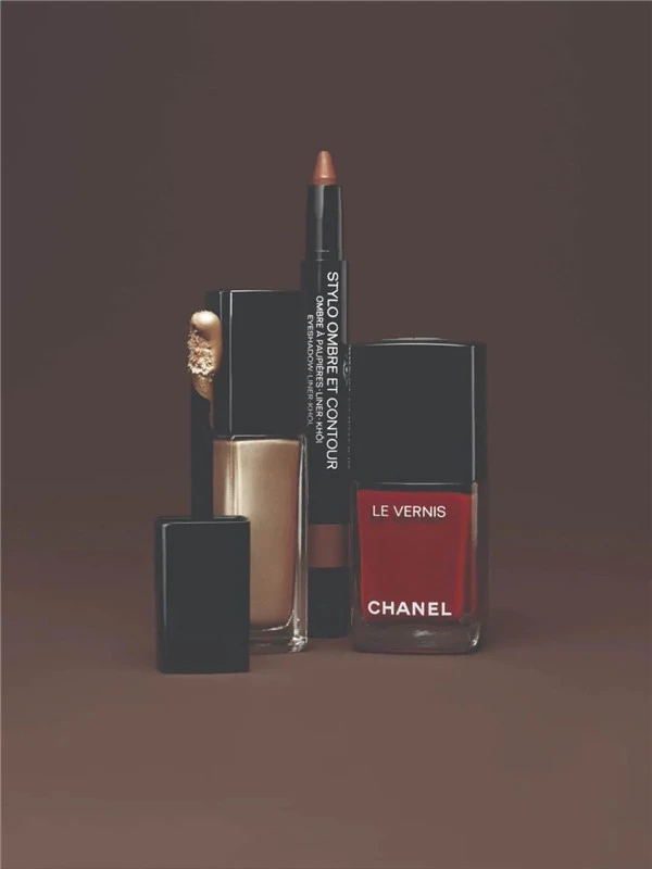 香奈儿 2021 秋冬新款化妆品的主题是“Tone on Tone”,这是一种重叠相似颜色深浅的配色方案。基于暖灰色、各种卡其色、自然米色和带红色的棕色四种颜色,我们将开发一个以眼睛和指尖为重点的大胆色彩系列。