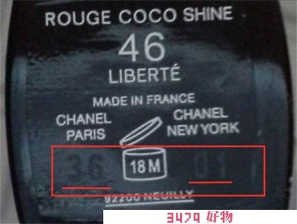 香奈儿常见批号,就是四位纯数字,前两位指代生产日期,后两位可能是批次等信息。并且香奈儿的化妆品批号不是把年、月分开指代,而是用01~96数字排列的顺序,分别对应每一年的每个月份,比如90对应2015年6月,48对应2019年12月。比如香奈儿批号“3605”,其中“36”表示“2018年12月”,所以生产日期是“2018年12月1日”。